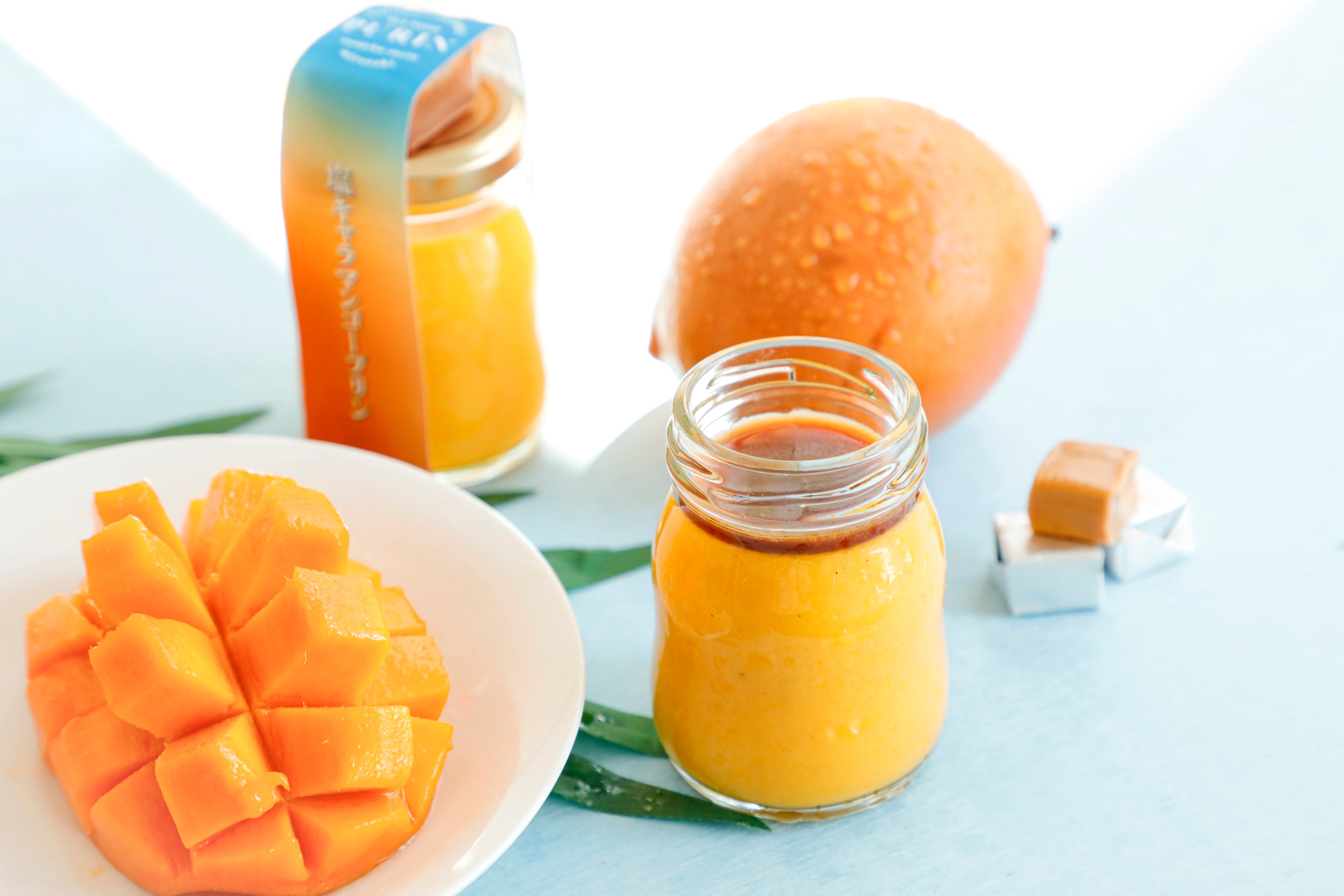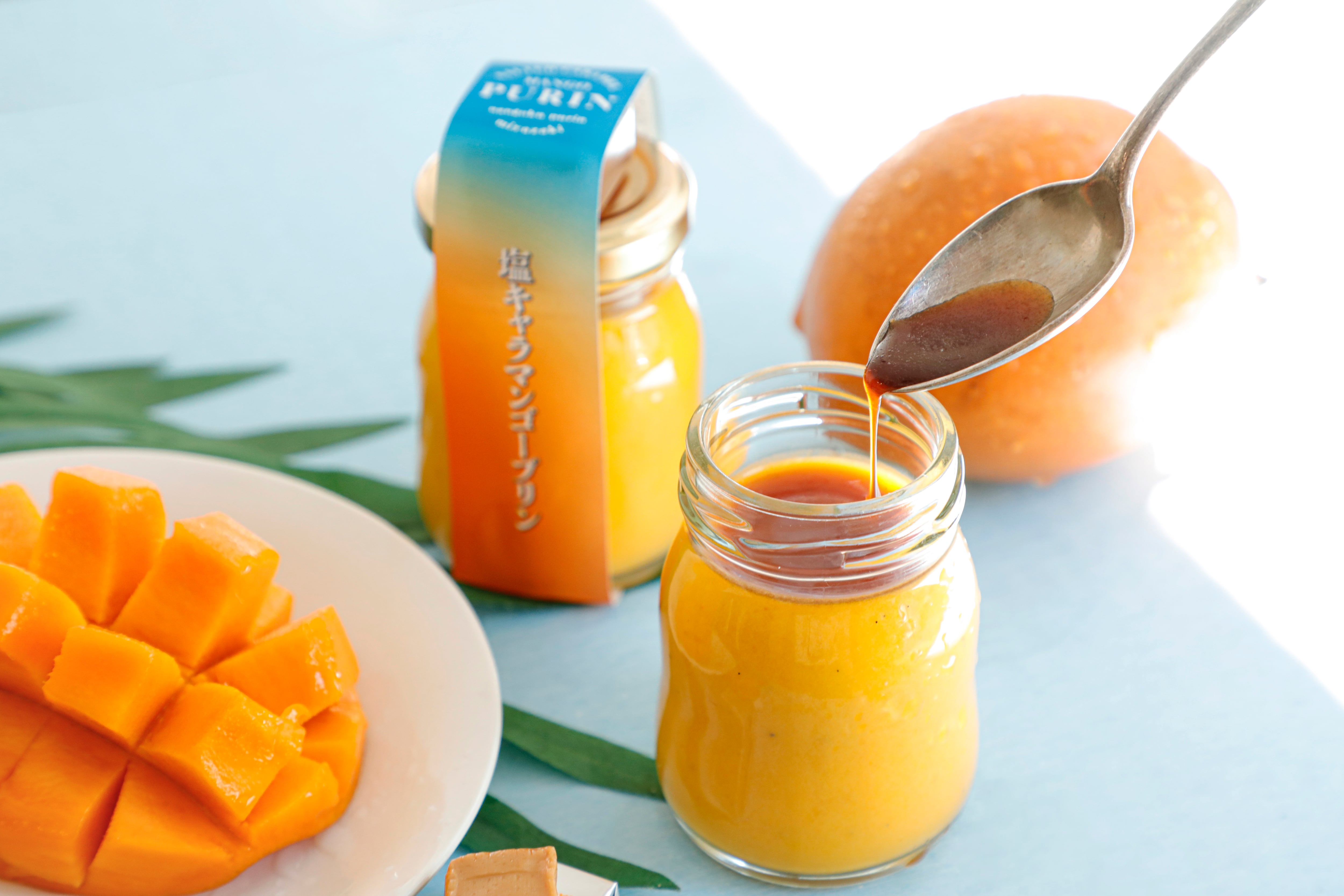 そのまま食べてもすっきりとしていておいしいのですが、マンゴープリンのために作った自家製塩キャラメルソースをかけるとマンゴーの味に深みが増して、本当にキャラメルソースをかけたの?といわれるほど