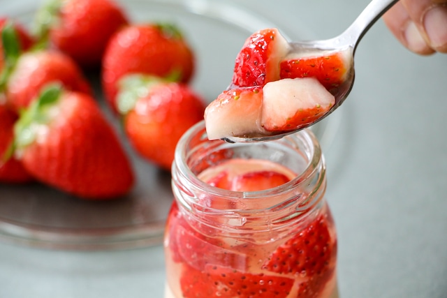 宮崎県産のいちごをたっぷりとジュレに浮かべ、とろけるようななめらかプリンに浮かべました。プリンといちごを一緒に食べるとまるでショートケーキのような味わい。
