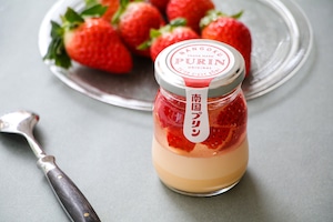 宮崎県産のいちごをたっぷりとジュレに浮かべ、とろけるようななめらかプリンに浮かべました。プリンといちごを一緒に食べるとまるでショートケーキのような味わい。